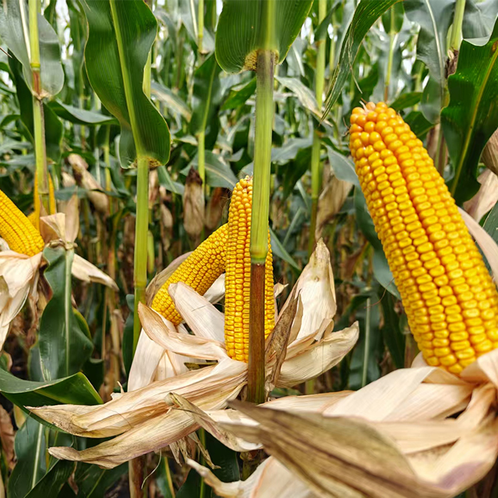 特征特性:普通玉米品種。在適應(yīng)區(qū)出苗至成熟生育日數(shù)117天左右,需≥10℃活動(dòng)積溫2300℃左右。該品種幼苗期第一葉鞘紫色,葉片深綠色,莖綠色。雄穗一級(jí)分枝6~8個(gè),穎殼綠色,花藥綠色,花絲淺紫色。株高310厘米,穗位高112厘米,成株可見14片葉。果穗長(zhǎng)錐型,穗軸紫色,穗長(zhǎng)18.9厘米,穗粗4.8厘米,穗行數(shù)16~18行,籽粒馬齒型、黃色,百粒重36.5克。兩年品質(zhì)分析結(jié)果:容重736~778克/升,粗蛋白9.39%~10.20%,粗脂肪4.95%~4.97%,粗淀粉71.48%~73.10%。三年抗病接種鑒定結(jié)果:中抗至中感大斑病,絲黑穗病發(fā)病率2.3%~6.7%,莖腐病發(fā)病率0.0%~4.2%,抗鐮孢穗腐病。